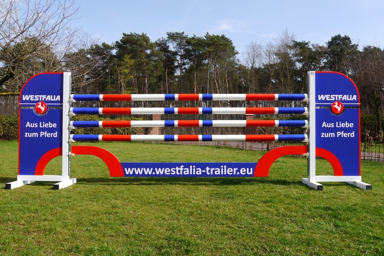 De cette façon, votre entreprise sera toujours visible pour de nombreux amateurs de chevaux ! Nous vous aidons volontiers pour créer votre obstacle sponsorisé. Un fichier vectoriel du logo de votre entreprise est tout ce dont nous avons besoin.